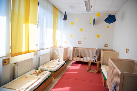 Nach einem spannenden Vormittag und einem leckeren, gemeinsamen Mittagessen, kommen die Kinder der Mäusegruppe (U-3 Gruppe) hier zur Ruhe.